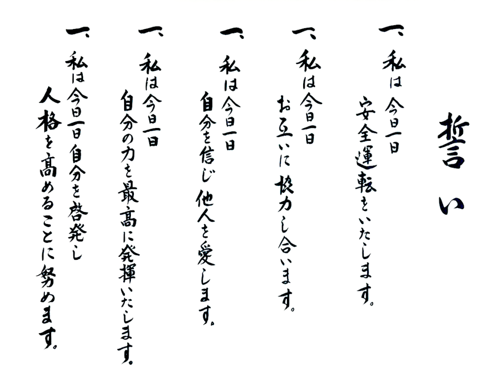 - 仕事(職場)をとおして成長をするため、健康な身体を創りあげるため、一人一人がいきいきとできる職場(現場)であることが大切である。